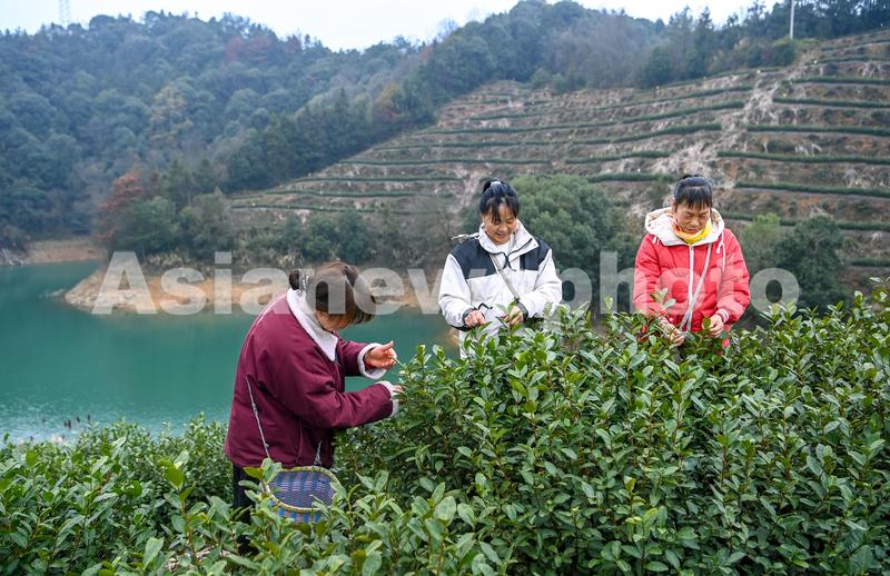 2024年2月27日,杭州千岛湖纯浙农业开发有限公司岛屿生态茶园基地,春茶进入采摘期,碧水之上采茶船纵横交错于岛屿之间,茶农正在采摘、炒制今年第一批千岛湖茶。
