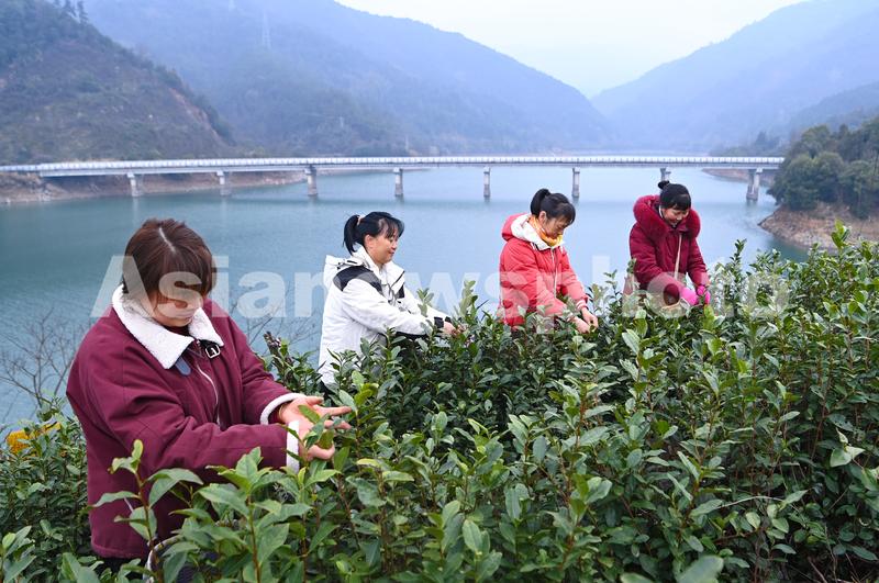 2024年2月27日,杭州千岛湖纯浙农业开发有限公司岛屿生态茶园基地,春茶进入采摘期,碧水之上采茶船纵横交错于岛屿之间,茶农正在采摘、炒制今年第一批千岛湖茶。