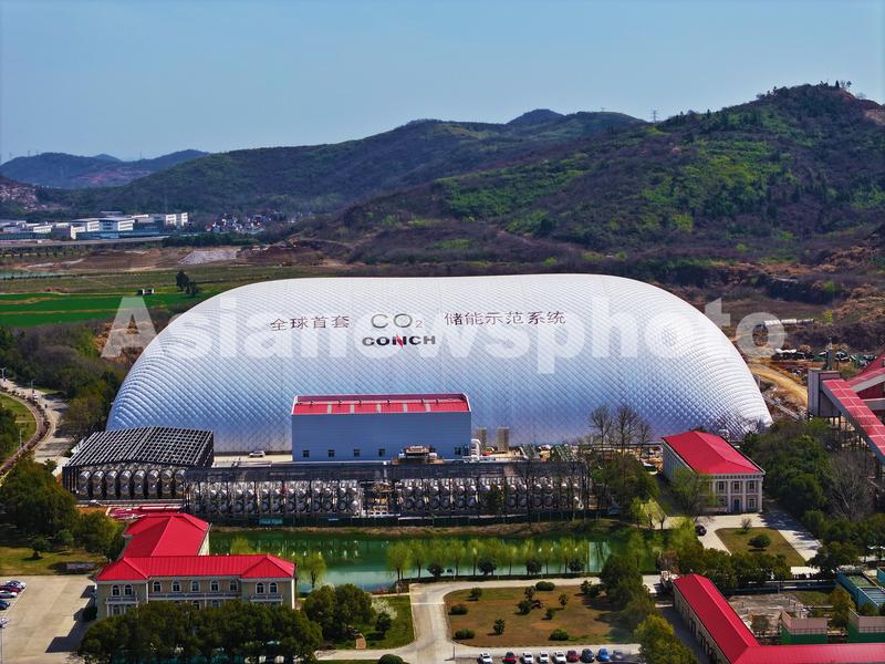 2024年3月21日,安徽省芜湖市繁昌区繁阳镇库山村,航拍国家新型储能试点示范项目——海螺集团10MW/80MWh二氧化碳储能项目。