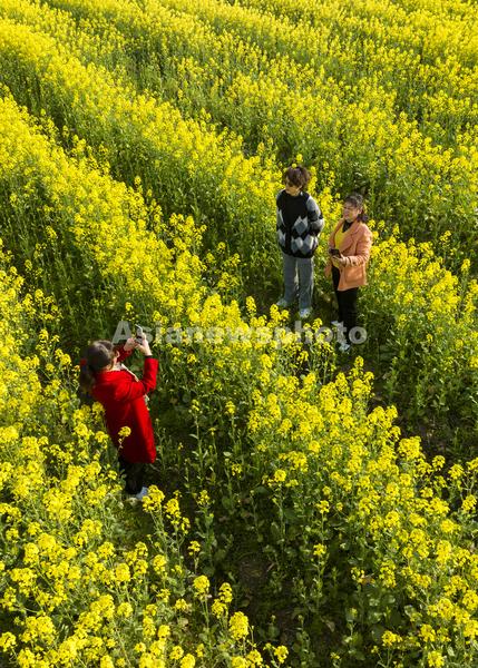 图片说明:2024年3月19日,安徽省芜湖市三山经济开发区峨桥镇,游客在响水涧油菜花海里游玩赏花。