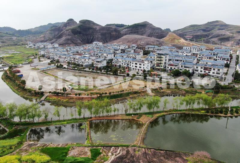 2024年3月21日,湖南省资兴市唐洞街道大王寨村一幢幢蓝顶白墙的新房与丹霞地貌、田园、鱼塘、公路互相依衬,构成一幅美丽的乡村春日图景。