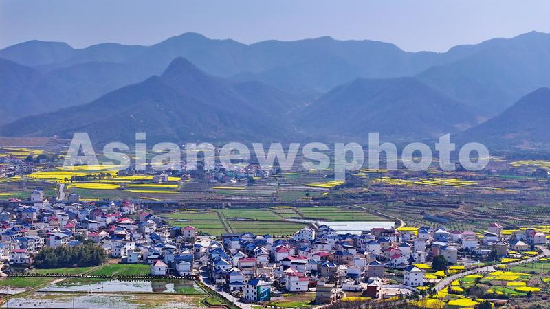 2024年3月20日,江西省九江市湖口县武山镇王常村一带,乡村大地阡陌纵横,屋舍小楼错落有致,道路畅通、风景优美,宛如一幅春日田园生态画卷映入眼帘。