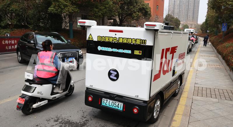 江苏连云港:无人驾驶快递车正式投运 查看组图
