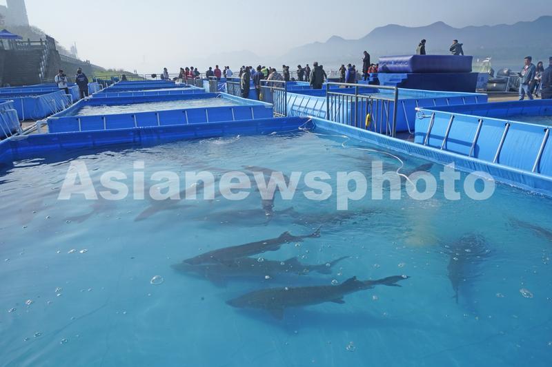 20余万尾子二代中华鲟放归长江 查看组图