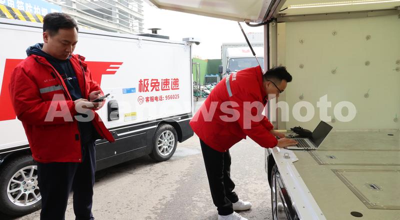 江苏连云港:无人驾驶快递车正式投运 查看组图