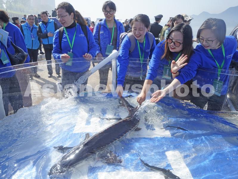 图片说明:3月28日拍摄的放流活动现场。