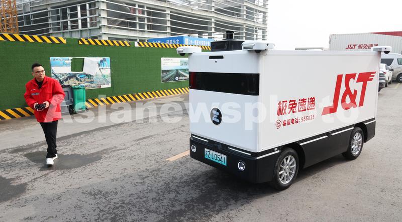 江苏连云港:无人驾驶快递车正式投运 查看组图