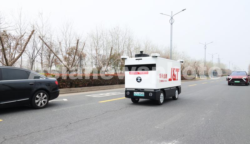 江苏连云港:无人驾驶快递车正式投运 查看组图