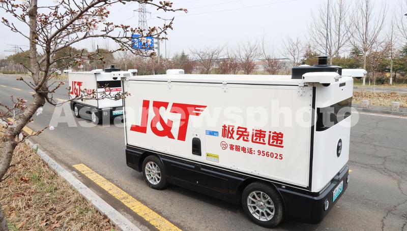 江苏连云港:无人驾驶快递车正式投运 查看组图