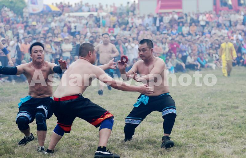 图片说明:2024年3月28日,在广西壮族自治区崇左市江州区左州镇举办的2024年金山花炮节系列活动中,当地群众参加抢花炮比赛。