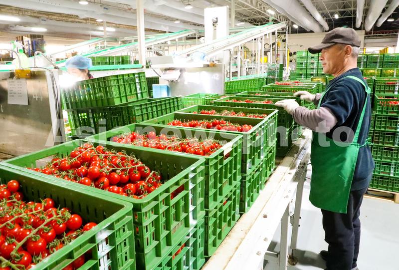 图片说明:3月31日,在山东莱西市一家智慧农业产业园,工人在对果品进行分拣包装。