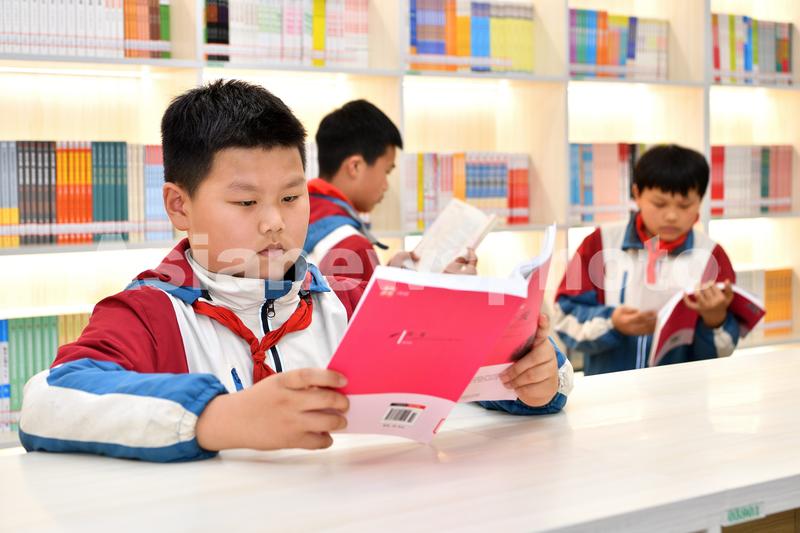 图片说明:4月2日,在湖北省襄阳市保康县实验小学,学生在图书室阅览图书。