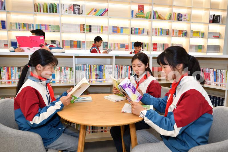 图片说明:4月2日,在湖北省襄阳市保康县实验小学,学生在图书室阅览图书。