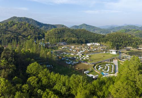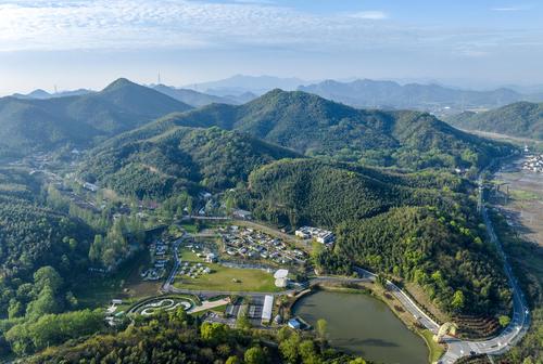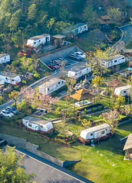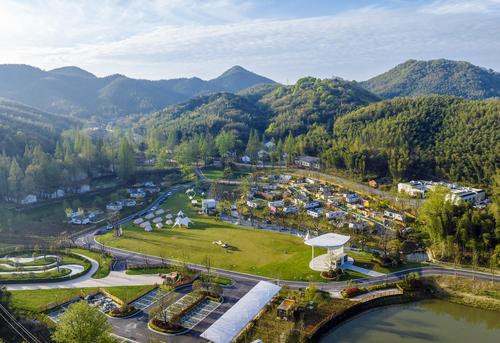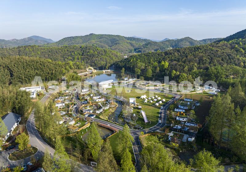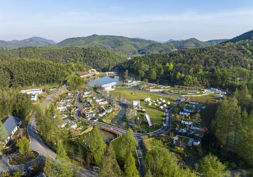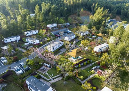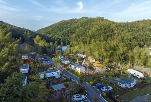 图片说明:2024年4月5日,在安徽省芜湖市繁昌区孙村镇中分村途居马仁山房车露营地,数十辆房车错落有致分布在山林竹海间。