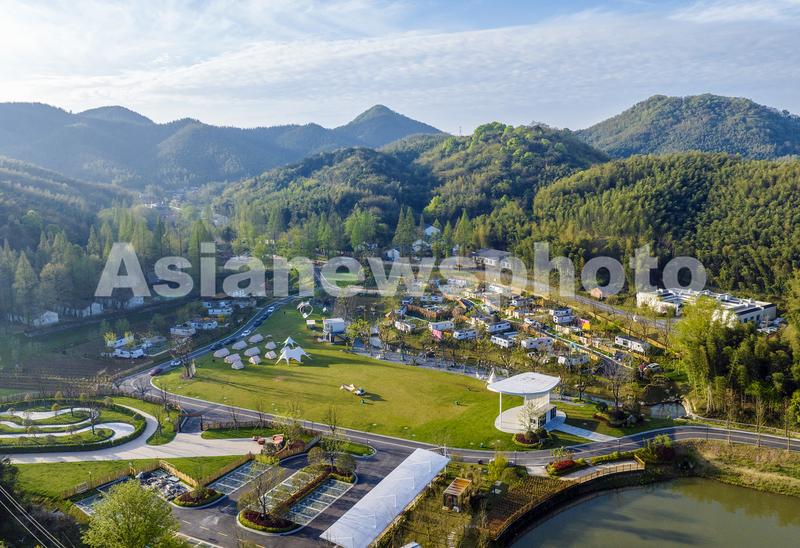 图片说明:2024年4月5日,在安徽省芜湖市繁昌区孙村镇中分村途居马仁山房车露营地,数十辆房车错落有致分布在山林竹海间。