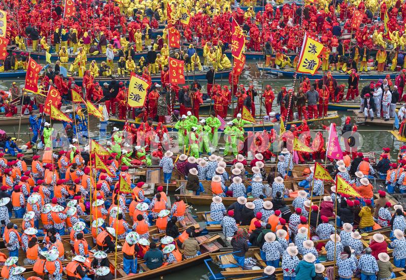 2024年4月6日,,2024年泰州姜堰溱潼会船在江苏省泰州市姜堰区溱湖国家湿地公园开幕,五百多条各式各样的船只和上万名会船选手飞篙走桨,弄潮击浪,演绎历久弥新的民俗画卷。