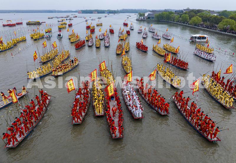 2024年4月6日,,2024年泰州姜堰溱潼会船在江苏省泰州市姜堰区溱湖国家湿地公园开幕,五百多条各式各样的船只和上万名会船选手飞篙走桨,弄潮击浪,演绎历久弥新的民俗画卷。