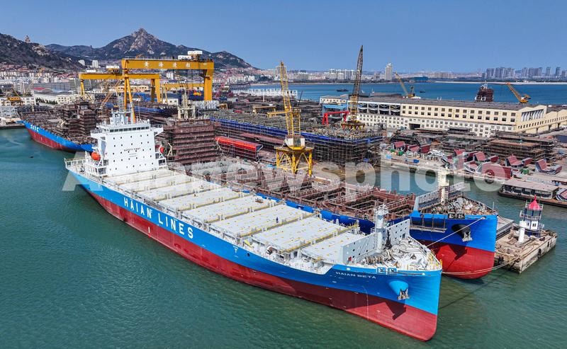 2024年4月11日,在山东省荣成市石岛管理区修造船产业基地船坞内,一派繁忙景象,泊位上停满各类在建、待修、维护保养的大型船舶,多艘大中型LNG船、集装箱船、南极磷虾捕捞加工船等特种船舶订单等待交付。