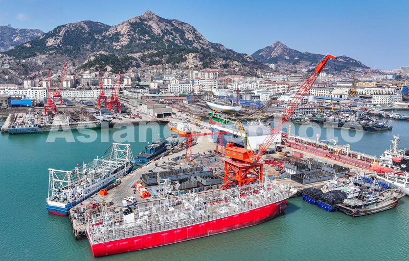 2024年4月11日,在山东省荣成市石岛管理区修造船产业基地船坞内,一派繁忙景象,泊位上停满各类在建、待修、维护保养的大型船舶,多艘大中型LNG船、集装箱船、南极磷虾捕捞加工船等特种船舶订单等待交付。