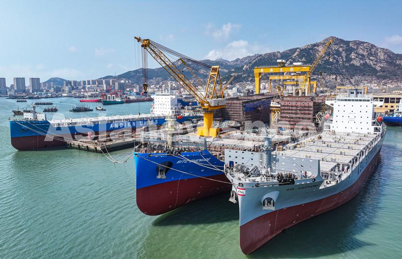 2024年4月11日,在山东省荣成市石岛管理区修造船产业基地船坞内,一派繁忙景象,泊位上停满各类在建、待修、维护保养的大型船舶,多艘大中型LNG船、集装箱船、南极磷虾捕捞加工船等特种船舶订单等待交付。