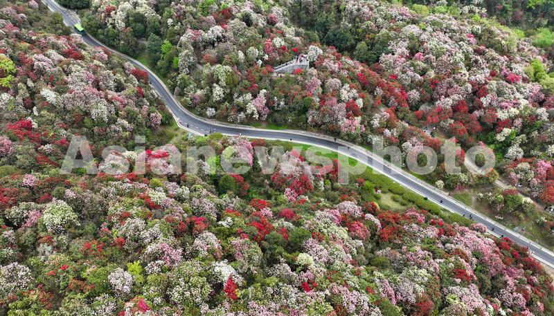 时下,贵州省毕节市百里杜鹃景区的杜鹃花竞相绽放,美不胜收,吸引了不少游客前来观赏、沉醉其中。据悉,百里杜鹃风景名胜区是国家5A级旅游景区,被誉为“世界上最大的天然花园”,享有“地球彩带、世界花园”之美誉。