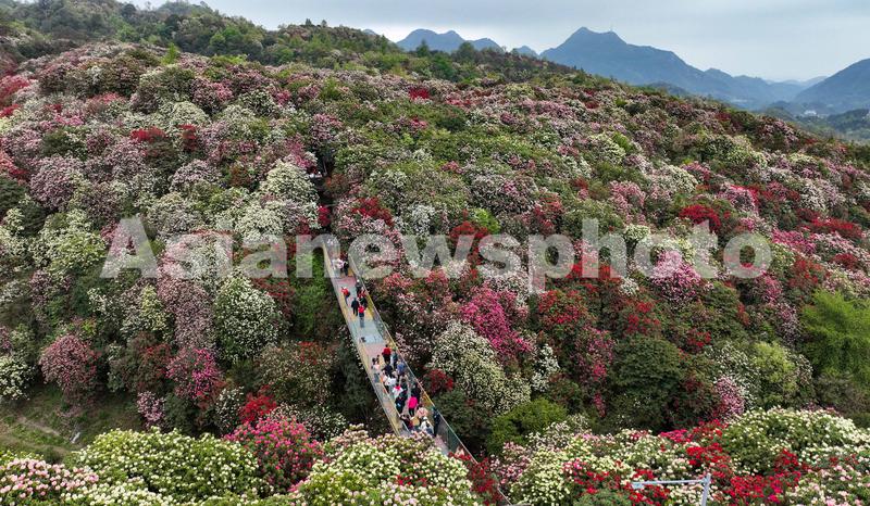 2024年4月11日,游客在贵州省毕节市百里杜鹃景区赏花。