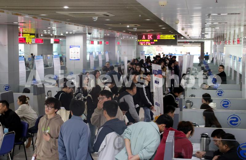图片说明:2024年4月12日,求职者在苏州市跨境电商人才专场招聘会寻找职位。