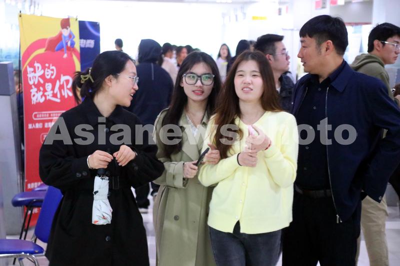 图片说明:2024年4月12日,求职者在苏州市跨境电商人才专场招聘会寻找职位。