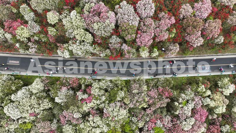 时下,贵州省毕节市百里杜鹃景区的杜鹃花竞相绽放,美不胜收,吸引了不少游客前来观赏、沉醉其中。据悉,百里杜鹃风景名胜区是国家5A级旅游景区,被誉为“世界上最大的天然花园”,享有“地球彩带、世界花园”之美誉。