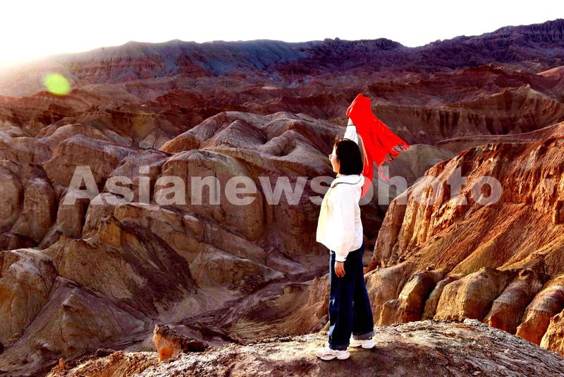 图片说明:2024年4月11日,游客在新疆吐鲁番市火云谷景区欣赏美景。