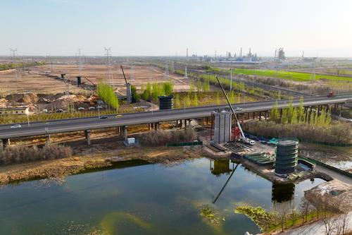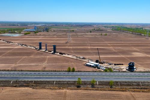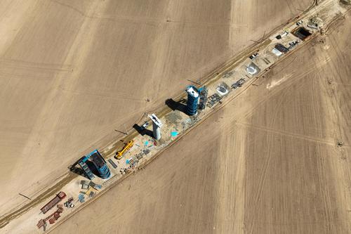 图片说明:2024年4月11日,工人正在包银高铁银巴支线建设现场有序施工,建设现场一派忙碌景象。