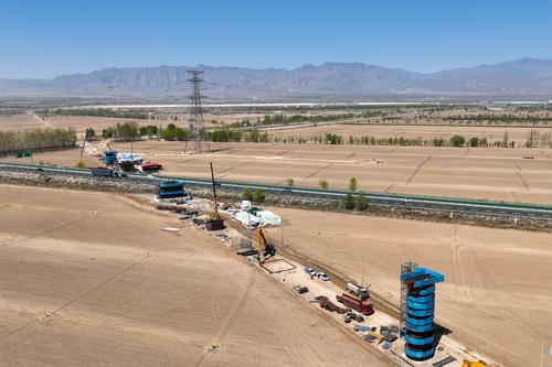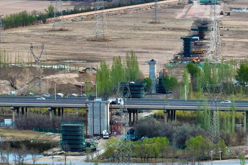 宁夏银川:包银高铁银巴支线建设正酣 查看组图