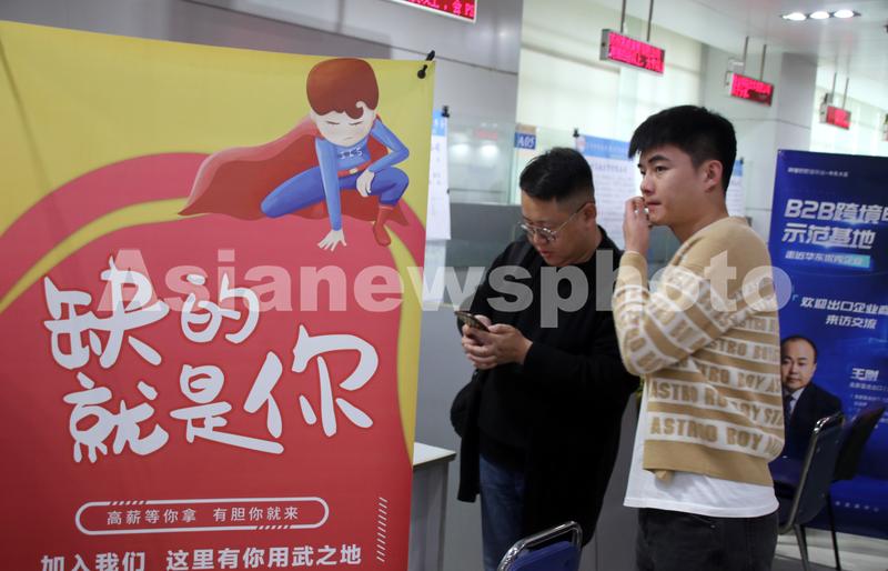 图片说明:2024年4月12日,求职者在苏州市跨境电商人才专场招聘会寻找职位。