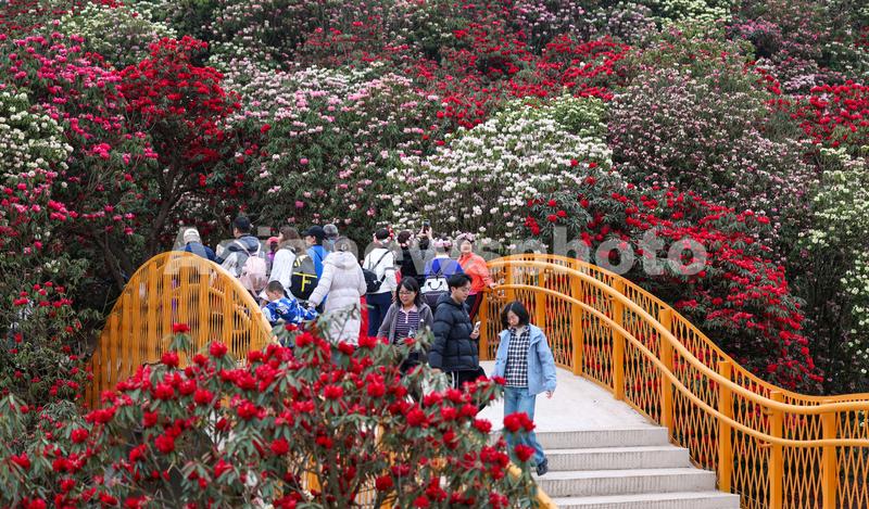 时下,贵州省毕节市百里杜鹃景区的杜鹃花竞相绽放,美不胜收,吸引了不少游客前来观赏、沉醉其中。据悉,百里杜鹃风景名胜区是国家5A级旅游景区,被誉为“世界上最大的天然花园”,享有“地球彩带、世界花园”之美誉。