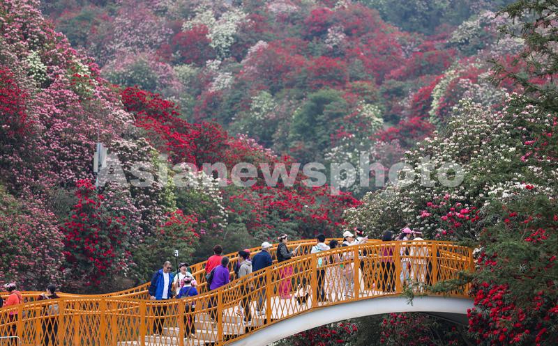 时下,贵州省毕节市百里杜鹃景区的杜鹃花竞相绽放,美不胜收,吸引了不少游客前来观赏、沉醉其中。据悉,百里杜鹃风景名胜区是国家5A级旅游景区,被誉为“世界上最大的天然花园”,享有“地球彩带、世界花园”之美誉。