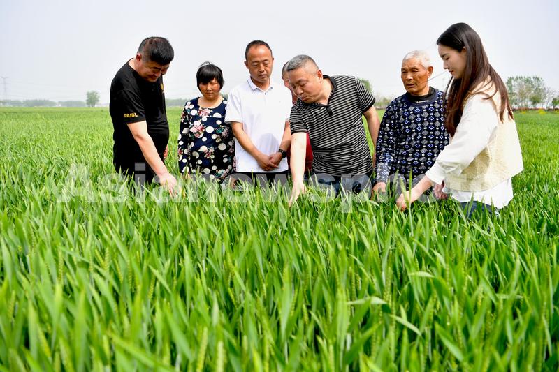4月16日,在安徽省亳州市利辛县胡集镇陈营社区麦田,党员、科技特派员李海贵(图中)在为群众讲解小麦病虫害防治知识。