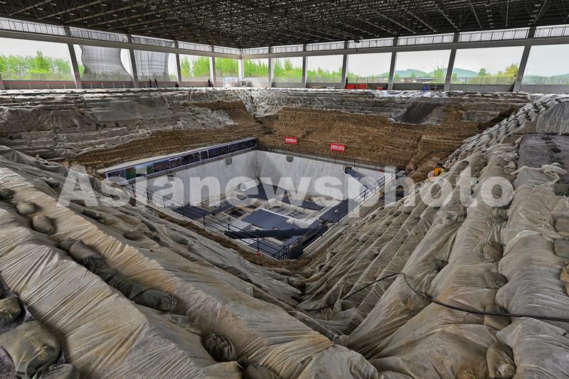 图片说明:4月16日拍摄的武王墩一号大墓发掘现场。