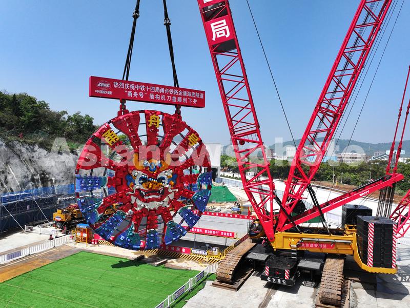 甬舟铁路工程:金塘海底隧道“甬舟号”盾构机刀盘顺利下井 查看组图