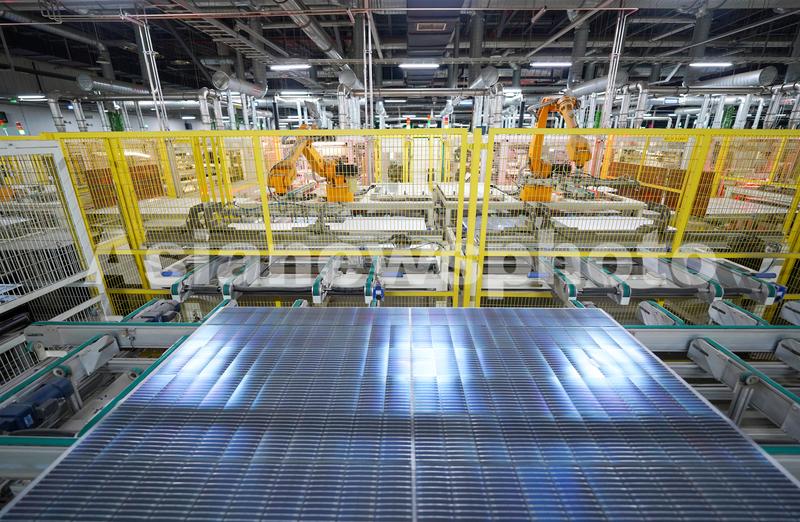 图片说明:2024年4月17日,江苏省宿迁经济技术开发区阿特斯阳光能源科技有限公司的智能工厂车间里,智能化生产线繁忙有序运转。