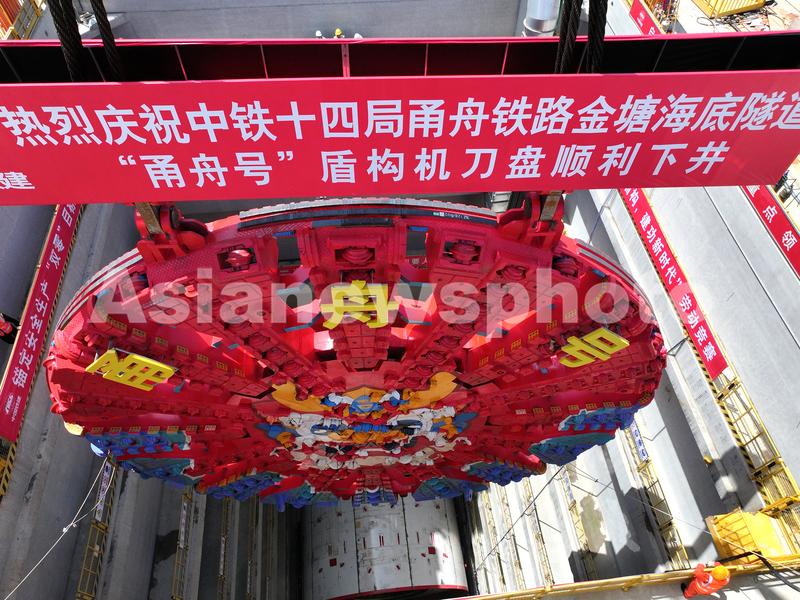 甬舟铁路工程:金塘海底隧道“甬舟号”盾构机刀盘顺利下井 查看组图