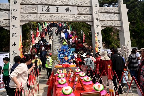 2024年4月19日,谷雨时节,山东省荣成市人和镇院夼村,渔民举办谷雨祭海活动,祈求百鱼上岸,收获满满。