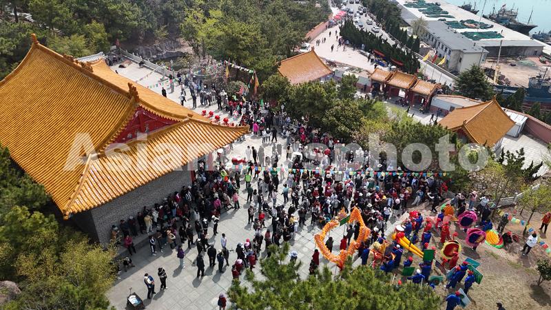 2024年4月19日,谷雨时节,山东省荣成市人和镇院夼村,渔民举办谷雨祭海活动,祈求百鱼上岸,收获满满。