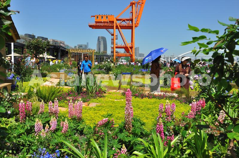 2024年4月18日,市民在上海徐汇滨江主会场观赏上海(国际)花展。