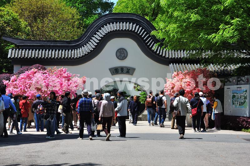 2024年4月18日,市民在上海植物园主会场观赏上海(国际)花展。