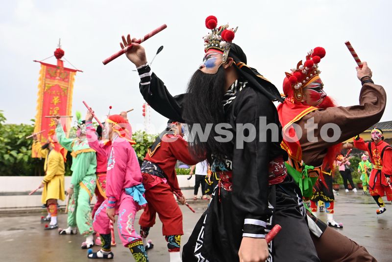 2024年4月23日,广东省揭阳市普宁市华溪村英歌舞表演队队员在表演英歌舞。