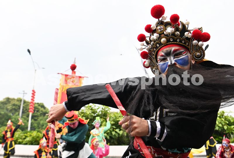 2024年4月23日,广东省揭阳市普宁市华溪村英歌舞表演队队员在表演英歌舞。