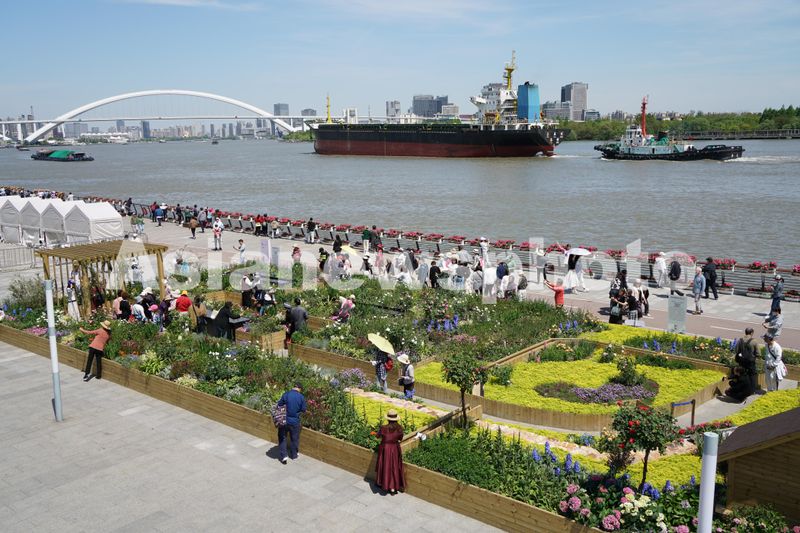 图片说明:2024年4月24日,游客在上海徐汇滨江的2024花展现场赏花。