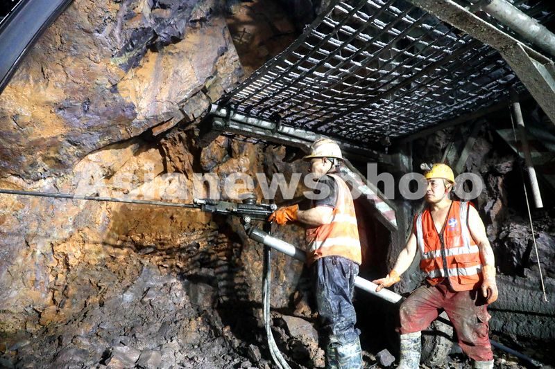 图片说明:2024年4月25日,江西省重点工程遂(川)至大(余)高速五指峰隧道施工现场,机械设备的轰鸣声此起彼伏,工人们忙着隧道开挖、二衬浇筑等作业。