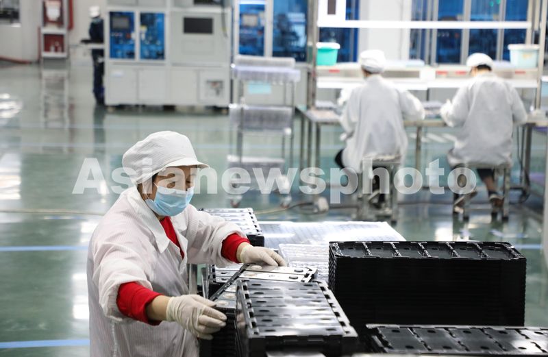 2024年4月25日,在安徽省池州市高新技术产业开发区骏智机电科技有限公司生产车间里,工人正在加紧生产新能源汽车动力电池结构件,供应海内外市场。
