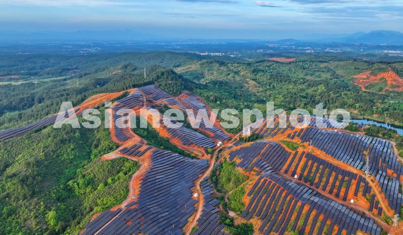 2024年4月23日,江西吉安永新县莲洲乡的一座石漠化荒山建起一排排光伏发电板,源源不断地输出绿色能源。